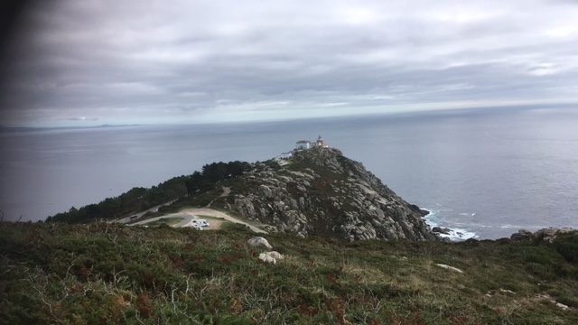 Nachmittags klart es auf, spitzelt sogar ab und zu die Sonne raus. Pilgere ich die allerletzten zwei Kilometer des Jakobswegs. Mitten in einer Horde echter Pilger. Die Entgegenkommenden wünschen »Buen camino«, im Café auf dem Kap gibt es Stempel fürs Pilgerbuch, dort steht auch ein Sammelcontainer für ausgebrauchte Wanderschuhe (damit sie nicht in Flammen aufgehen »Ein Ritual, das es niemals gab« – Waldbrandgefahr!). Und dann steht dort der weltberühmte Leuchtturm.