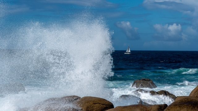 Costa de la muerte heißt die Küstenlinie um die Nordwestecke Spaniens herum. Keine Ahnung, was das heißen soll, Mörtelkiste vermute ich mal. (Vielleicht hab ich die Übersetzung auch falsch nachgegoogelt. Aber sie passt wie A… auf Eimer: Zäh wie Segeln im Maurerschlamm fühlt sich das an, wenn man trotz Wind und Superfahrt einfach nicht dort hinkommt, wo man hinwill). Und der andauernde Collision alarm bringt mich auch zur Weißglut. Anscheinend sind schon andere Seefahrer an dieser Küste verzweifelt, weil rundherum ODAS-Tonnen [Bojen als Unterschlupf für Schiffbrüchige] aufgestellt sind: Sicher haben sich schon öfter Seeleute aus Frust über die vergebliche Anstrengung an der Mörderküste … ähm: der Mörtelkiste über die Reling gestürzt. Ganz so weit bin ich noch nicht. Aber verstehen könnte ich es.