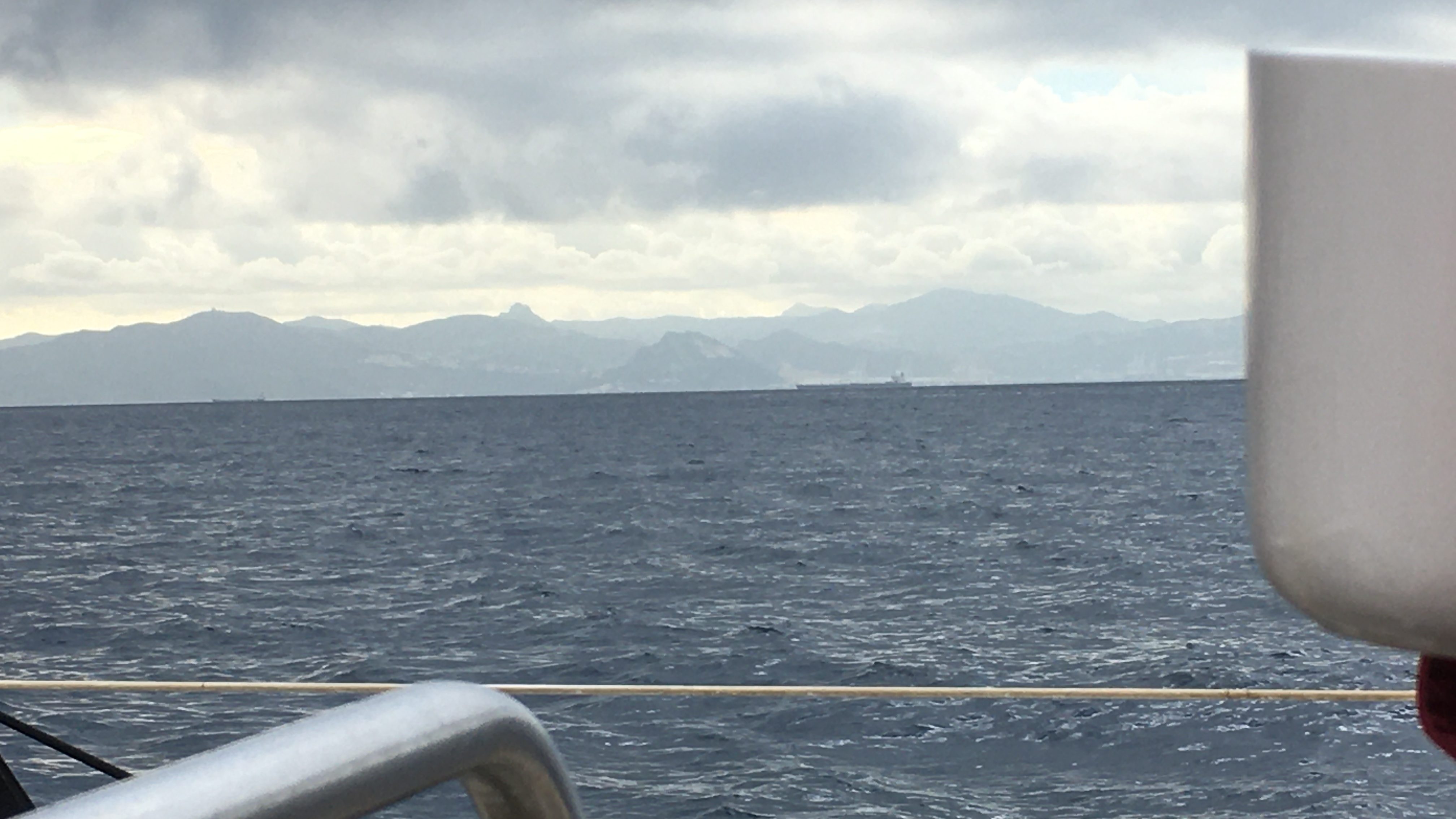 Gegen fünf kommen hohe Berge weit draußen auf dem Meer, abseits von Spanien in Sicht: Afrika! Das Atlasgebirge Marokkos.