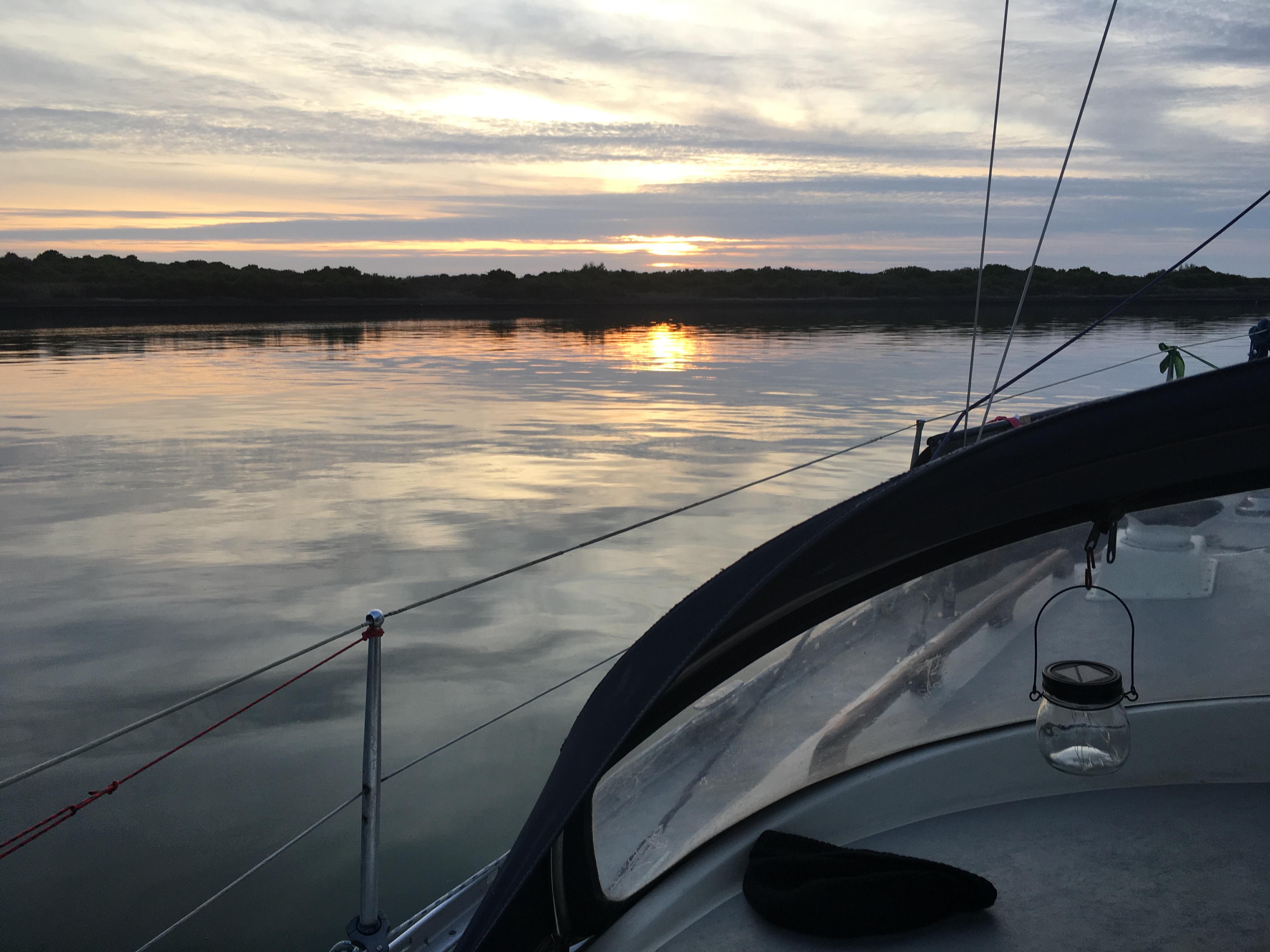 Jeden Morgen Sonnenaufgänge (weil ich nicht mehr schlafen kann; weil ich pinkeln muss), immer wieder schön. Dafür abends früh zu Bett – Strom sparen. Sonnenkollektor hab ich mir abgeschminkt, bräuchte ich ein neues Ladegerät, am besten sogar eine zusätzliche Batterie. Dabei bin ich sehr froh, wie meine Elektro-Reparatur geklappt hat …