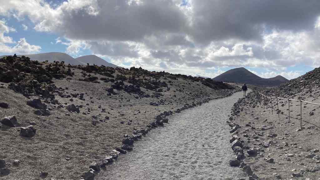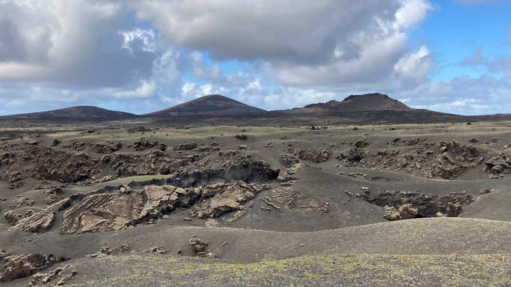 Für Freitag (27.01.) hatte Gawain einen Ausflug vorbereitet. Mit einem Mietroller (vorne zwei Räder) zum Timanfaya Nationalpark (Vulkanlandschaft mit Kratern), Regenpause in einem Tal voller Rebenanlagen, jahrelang aufgehäufte halbkreisförmige Steinwälle schützen einzelne Weinstöcke, dramatische Wolken ziehen darüber, düsteres Licht.