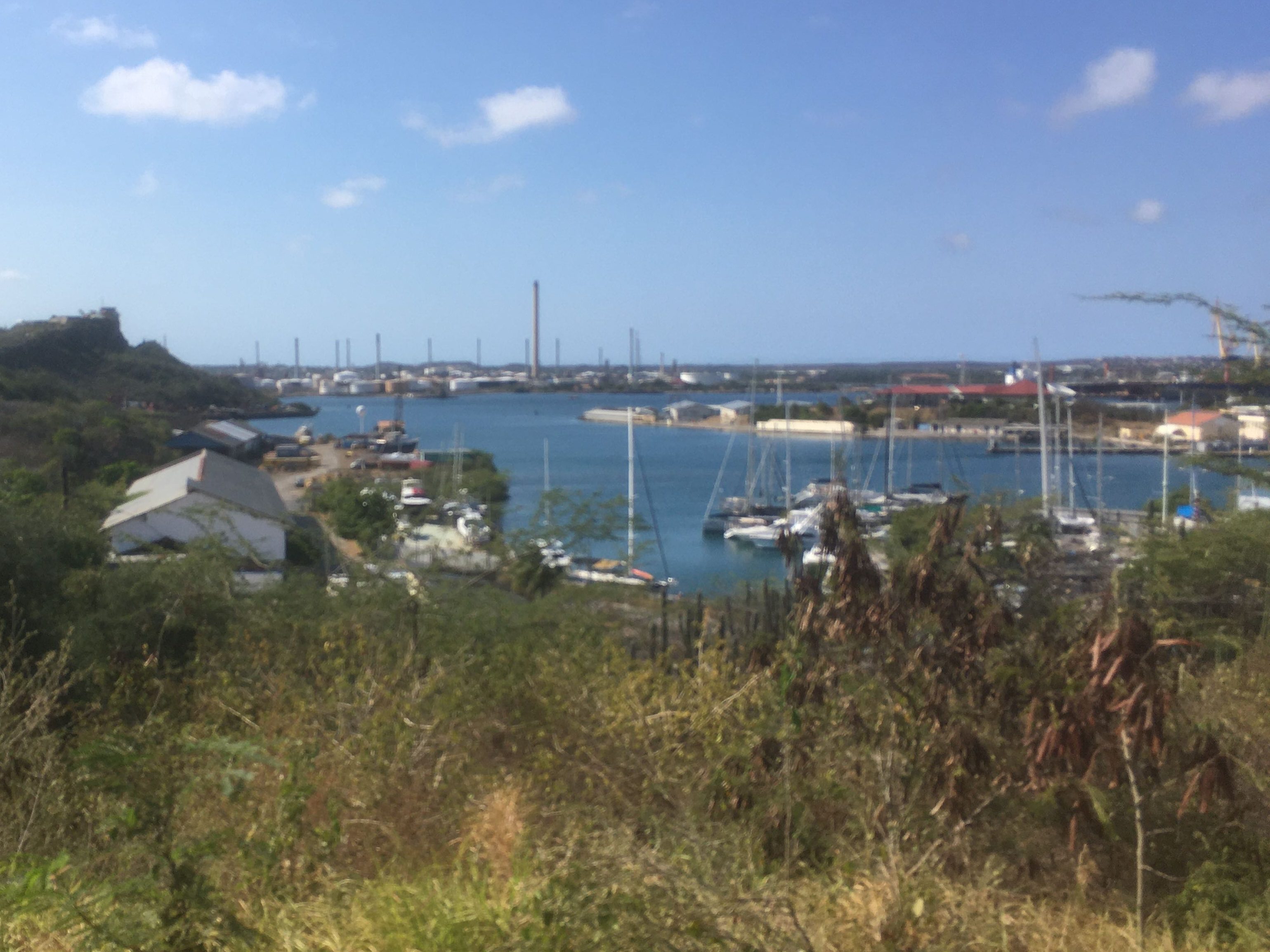 Curaçao, Mo., 24.04. Filmen ist gar nicht so einfach. Muss ich bei André Abbitte leisten. Gestern war ich nämlich Schnorcheln und GoProFilmen am Jeremi Beach, Empfehlung u. a. von Melisa, der guten Fee im Büro der Curaçao Marina. Gordon und Louise vom Nachbarboot hatten einen Wagen gemietet und mich bis zur Busstation in Otrabanda mitgenommen. Dort Kreuzfahrtschiff gecheckt, Norwegian Cruising Line klang vielversprechend. Aber sie fahren nicht nach Europa, nur zurück in die Staaten; gefrühstückt und auf den Bus E3 gewartet. Dann Riesenstau, ganz Curaçao hatte augenscheinlich die gleiche Idee: anderthalb Stunden für knapp über 30 km; Riesenfloats, Sattelschlepper mit ausgebauter Ladefläche, gigantischer PA und teilweise sogar die Bands an Bord, fahren selbstverständlich nur Schritttempo. Irgendwo unterwegs findet am Abend eine Riesenparty statt. Traveller im Bus: nippen am Haschisch-Aufguss aus goldglänzendem Trinkbecher, der zwischen ihnen rumgeht. Ausstieg (»Bushalte« heißen die Busstopps auf Curaçao) fast verpasst. Jeremi Beach ist schön, aber nicht atemberaubend. Auf den Felsen im Norden wird gerade eine Ferienhauskolonie entwickelt, gebaut, vermarktet. Am Strand schwimmen verendete Fischchen (4 cm) schulenweis und verfaulen auf dem Sand. »Wenn es dort drüben auch so stinkt, fahren wir an einen anderen Strand!«, unverkennbar eine genervte Münchnerin. (Ein Strand südlich, in Lagun, wo Gordon und Louise waren, herrschte das gleiche Bild, hab ich heute erfahren).