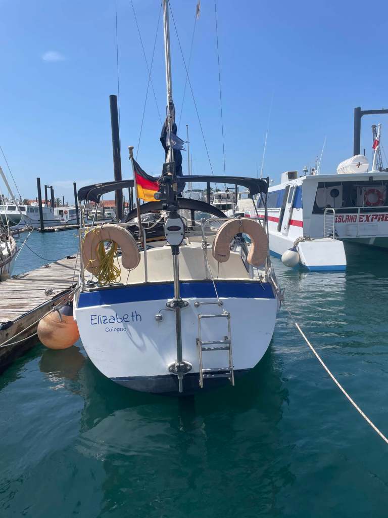 Am So., 19. Januar 2025 bin ich von Köln über Madrid nach Panama geflogen, am 20. mittags im Hafen Vacamonte angekommen. Niño hat mich schon vom Wasser aus gesehen und mir zugewinkt. Großes Hallo. Die ELIZABETH sieht ziemlich kläglich aus. Zwar ist sie picobello sauber, Niño hat sich rührend gekümmert. Aber durch einen Hurrikan hat die Arme einiges abbekommen. Alle Fender sind gefetzt, Niño musste immer neue ausgeben. Jetzt hängen alte, abgeschrammte, im Hafen zusammengesuchte zwischen ihr und dem Fischerkahn, der Niños Zuhause ist. Eine Relingsstütze ist gebrochen, eine andere ordentlich verbogen; die Drähte des Seezauns hängen wüst verdrillt und in einem Gewirr von Leinen, die Festmacher sind übelst verknotet. Trotz allem muss das Schiff am Nachbarkahn geschrammt haben, in die Deckskante ist ein kirschgroßes Loch geschlagen, die Scheuerleiste ist abgeschoren und ihre Schraube hat ebenfalls ein Loch in den Rumpf gerissen. Die Gummileiste fehlt. Und die Ankerwinsch, an der drei Festmacher seitlich gezogen haben, ist aus dem Deck gebrochen (und wieder zurückgesunken), dort ist ein fingerlanger Riss im Deck. Außerdem sind von den Vögeln, Pelikanen, sicher  sechs oder sieben Kilo schwer, die sich auf Verklicker und Windfahne gesetzt haben, beide Anzeiger abgebrochen, Niño übergibt mir die Übrigbleibsel. Eine Klampe ist verbogen, ebenso die Halterung des Bimini, beides ließ sich aber innerhalb eines Tages reparieren.